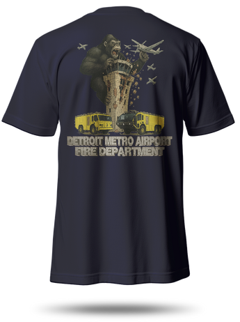 Featuring the fluted Detroit Metro air traffic control tower, their crash truck, and fire engine—this design brings a chaotic, video game-style aesthetic that screams rampage. A Detroit Metro Airport FD - Platoon 3 Design